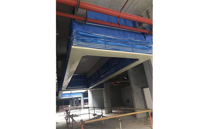 擋煙垂簾垂壁根據(jù)設(shè)計(jì)要求和現(xiàn)場(chǎng)實(shí)際情況采取如下施工順序:首先,搭設(shè)腳手架一放線一打眼--上脹栓一焊骨架。第二,吊件一安裝骨架…